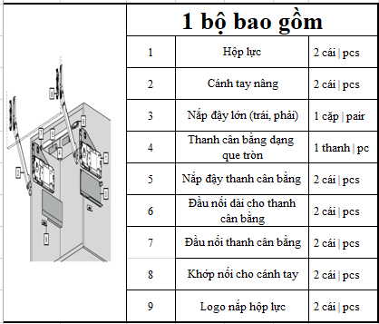 | Thanh cân bằng, mỗi bộ HL top cần 1 thanh | ||||||